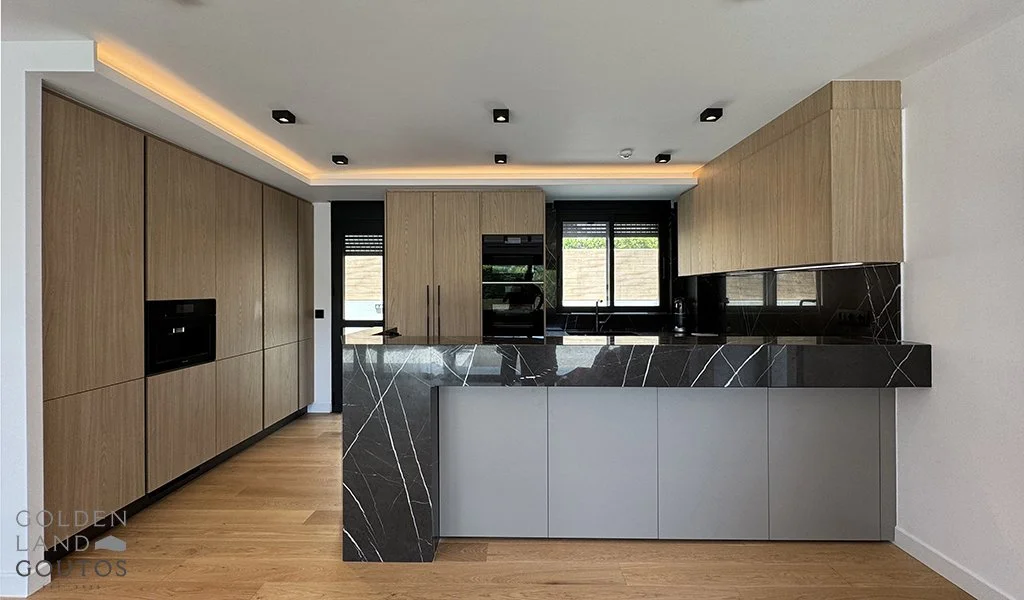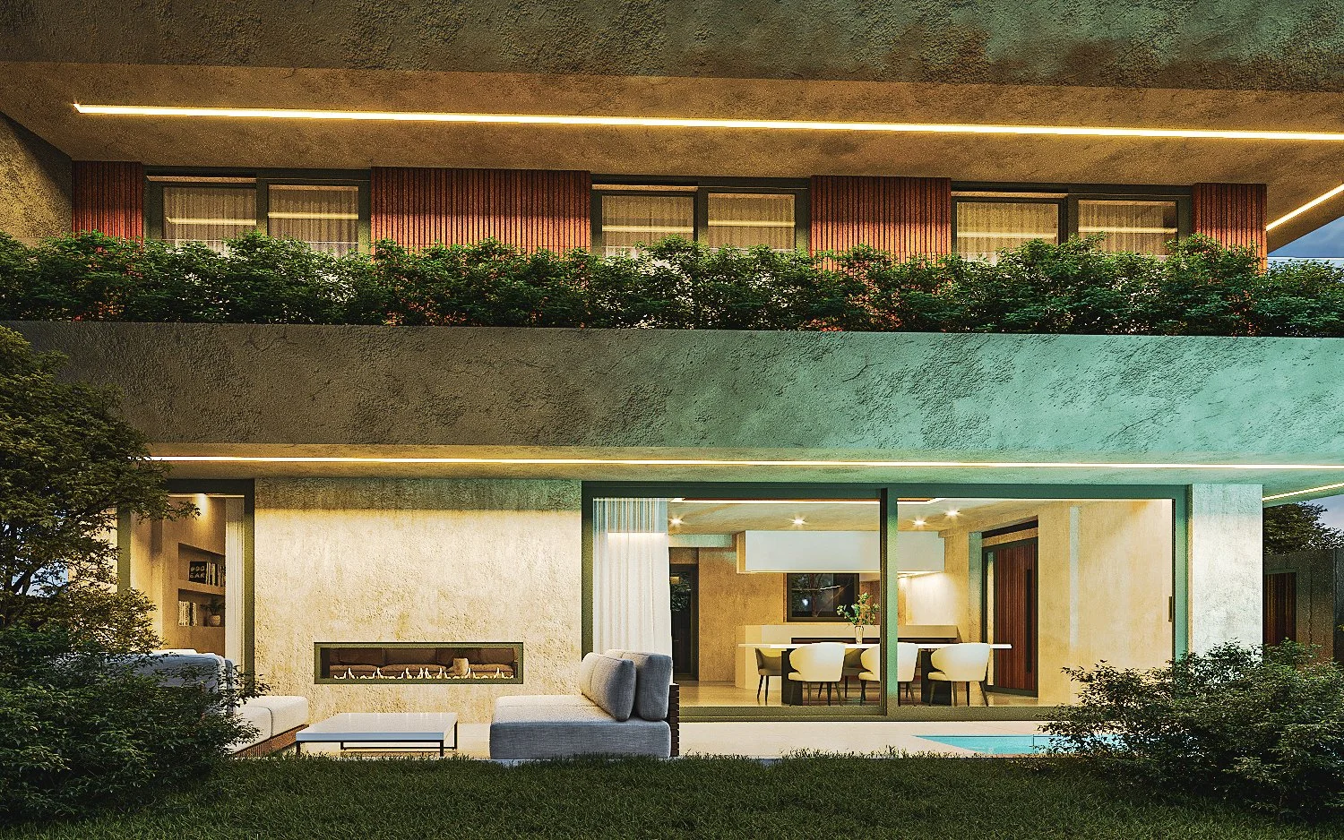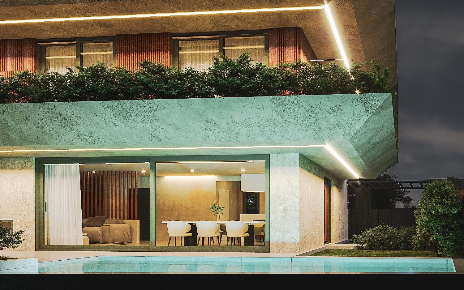 In our design, we embraced the owner's appreciation for Japanese architecture by studying traditional "minka" houses and reinterpreting their elements in a modern context. This is evident in the building's balconies and architectural projections, which are accented with light vegetation. The design employs a palette of earthy tones, combining cement-based finishes with natural materials like wood cladding on the boundary walls and first-floor balcony. The aim is to create a modern architectural language that reflects ecological awareness, blending the dynamism and tranquility of Japanese aesthetics with the urban fabric of Athens.
